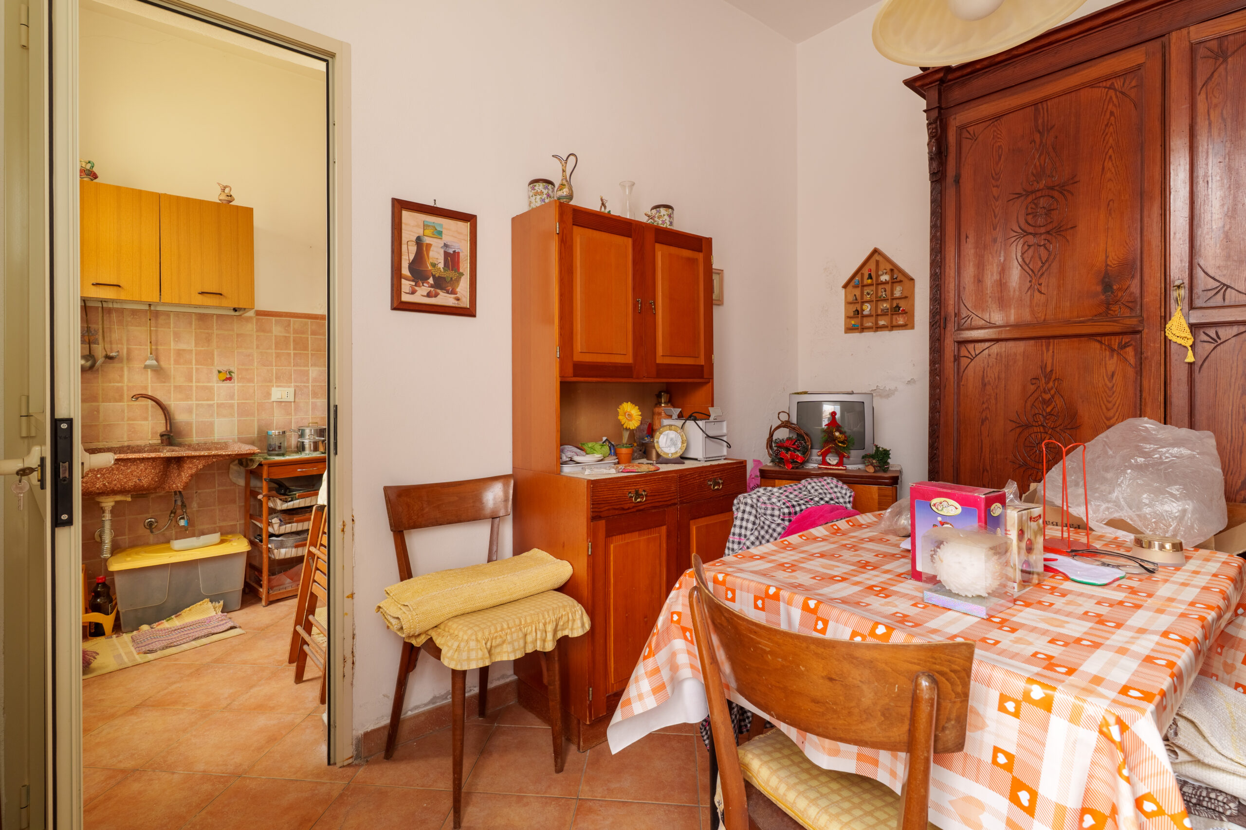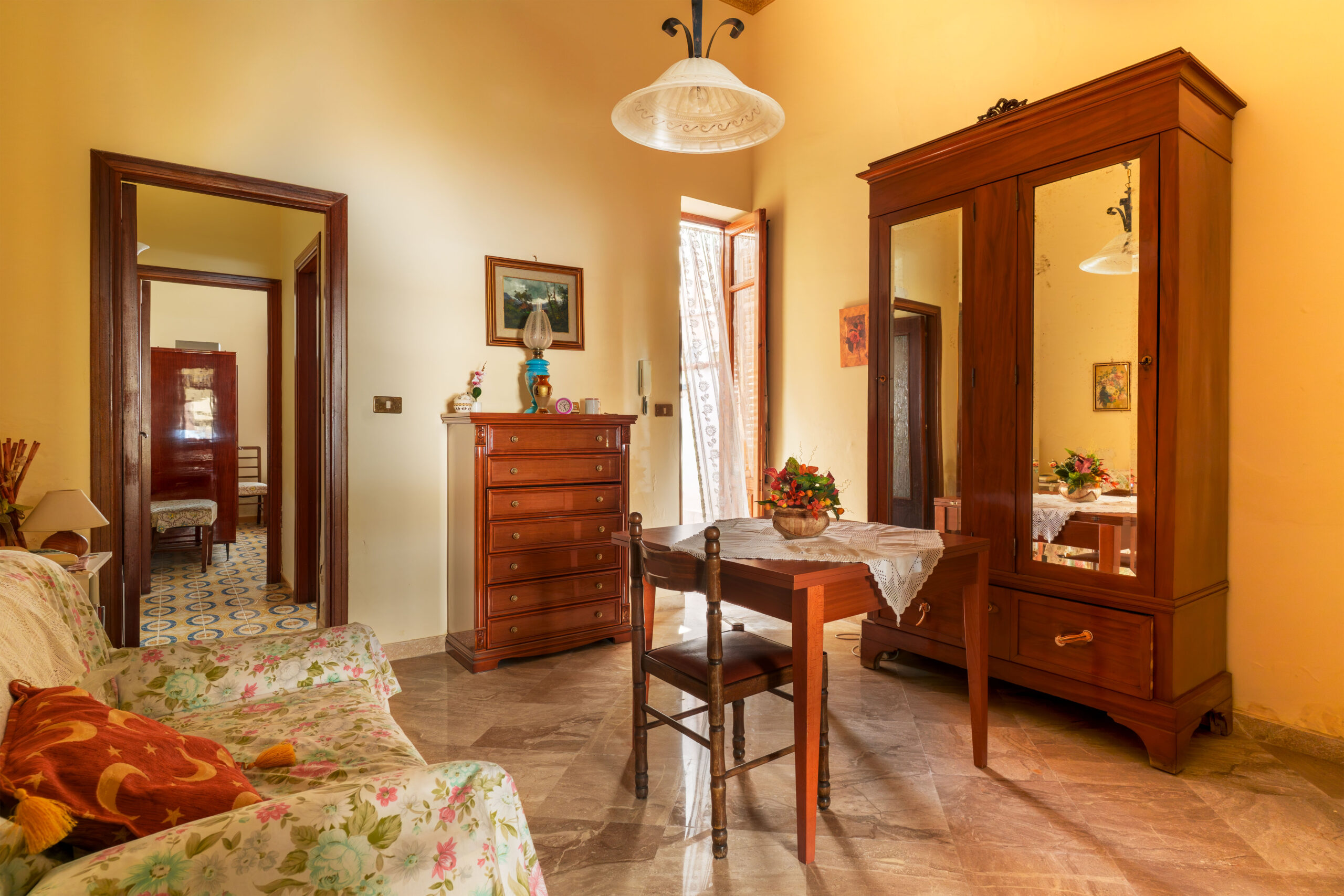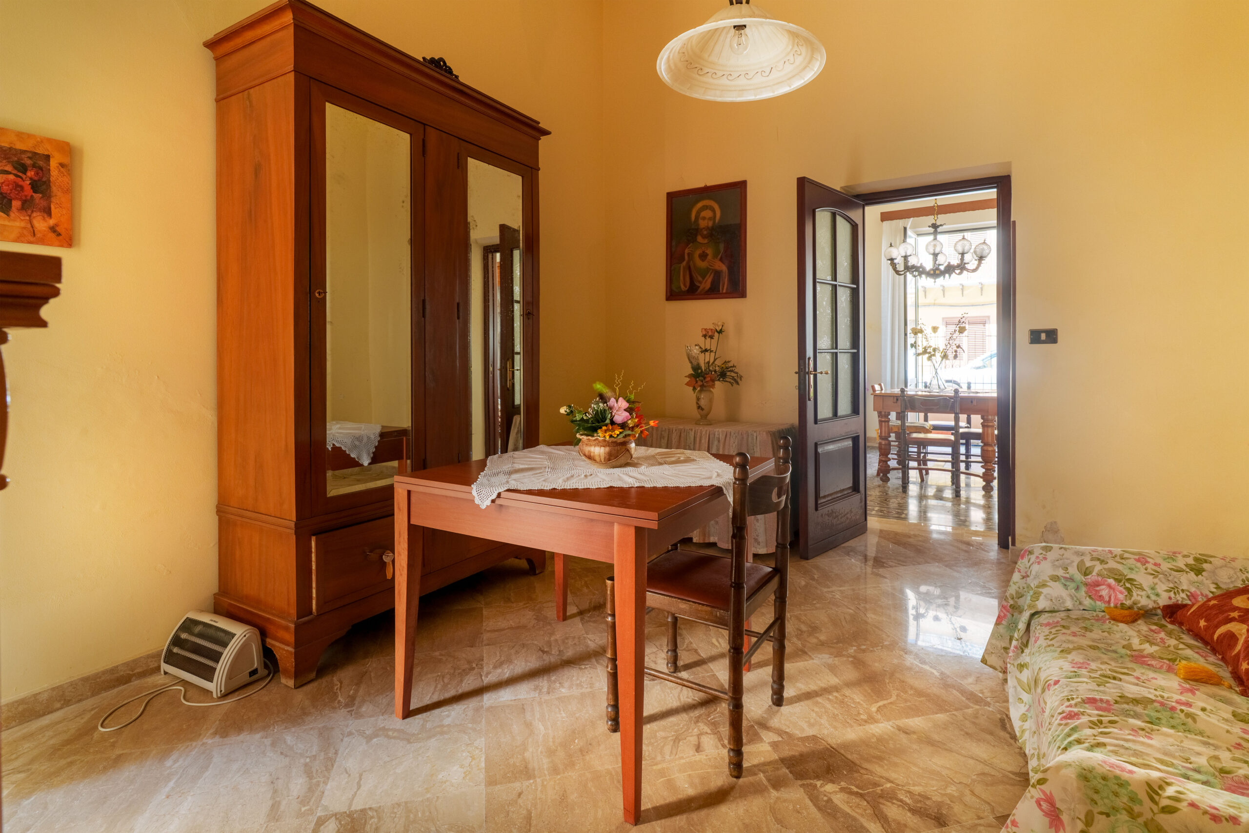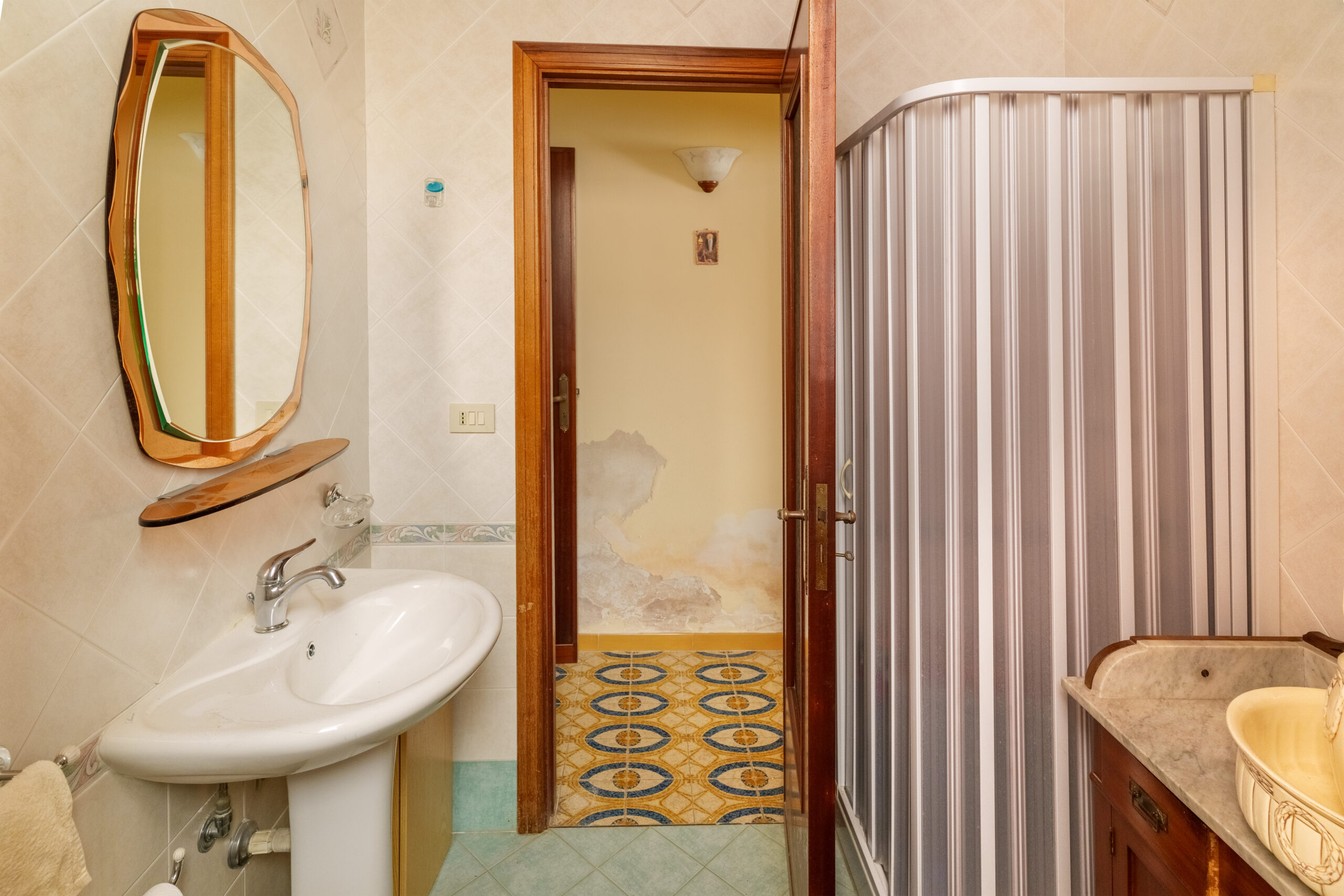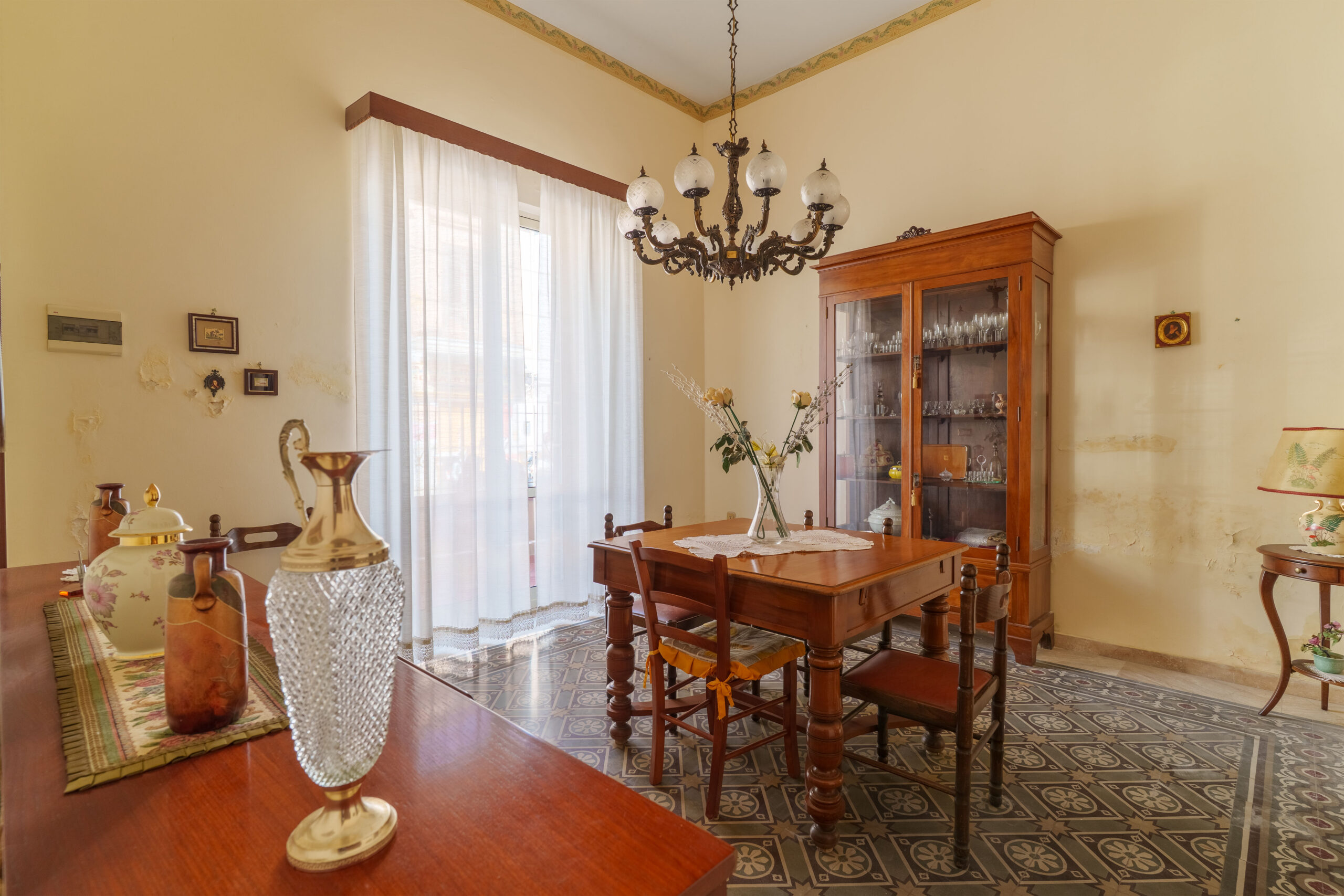 Le dotazioni comprendono porta d’ingresso blindata, porte interne in legno, infissi in legno, oltre a una pavimentazione mista che alterna ceramica, marmo e cementine d’epoca, conferendo all’immobile un fascino autentico. La soluzione si presenta da ristrutturare, offrendo così la possibilità di personalizzare gli ambienti secondo le proprie esigenze e i propri gusti.