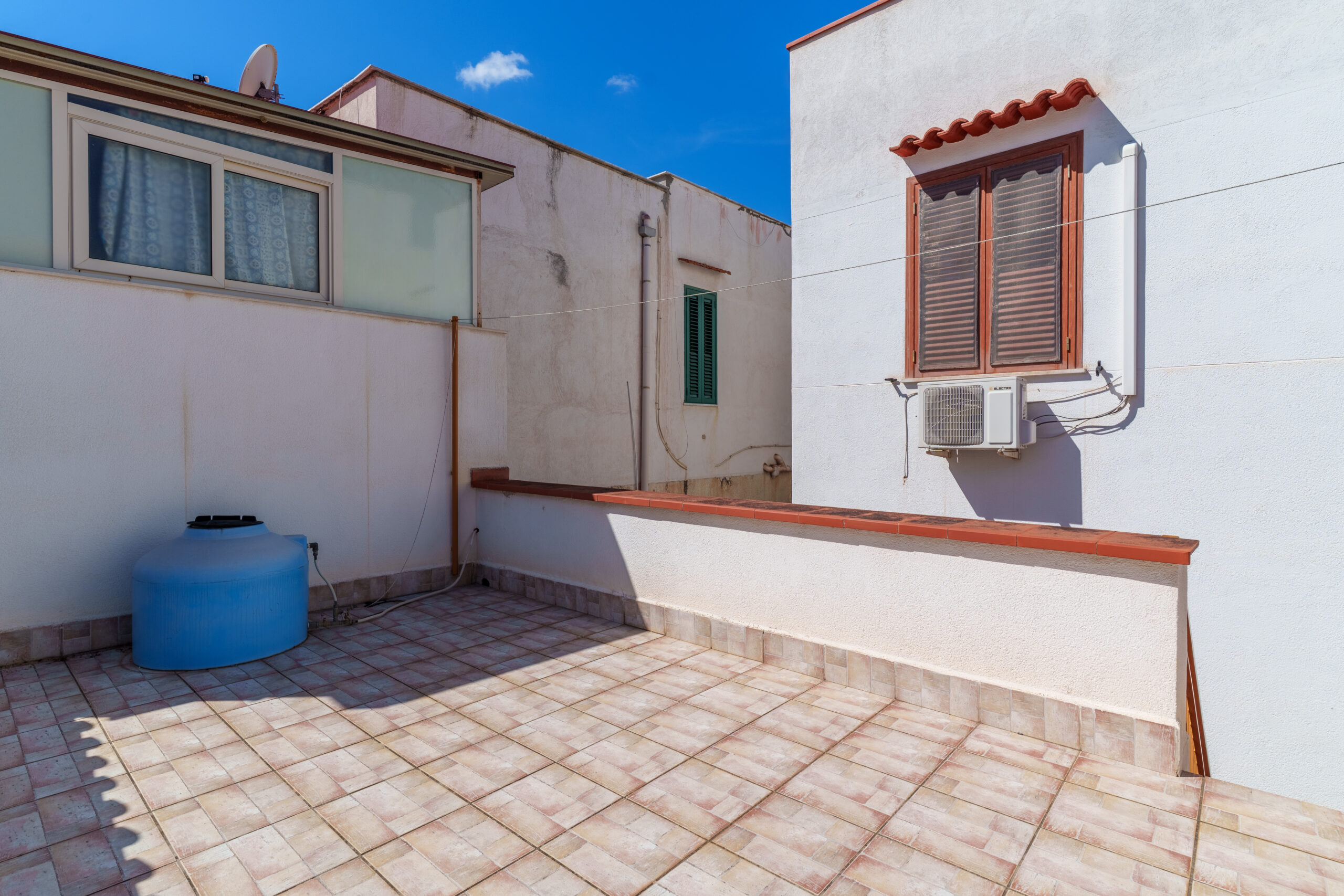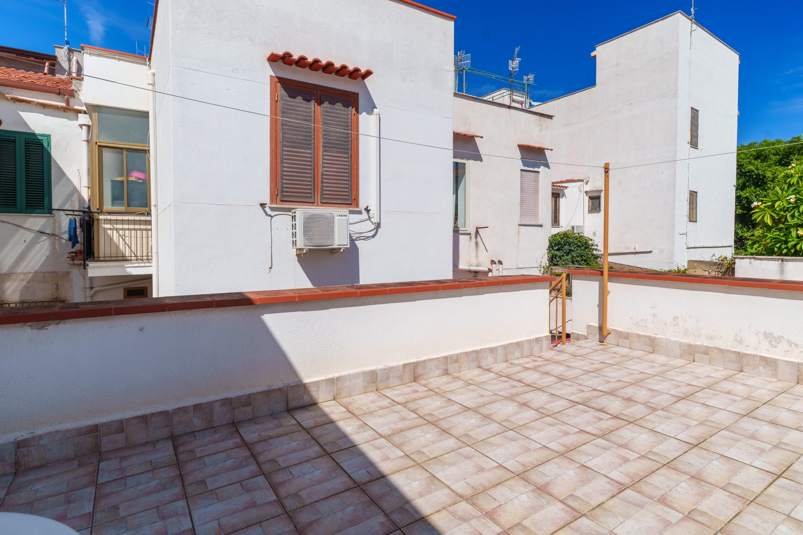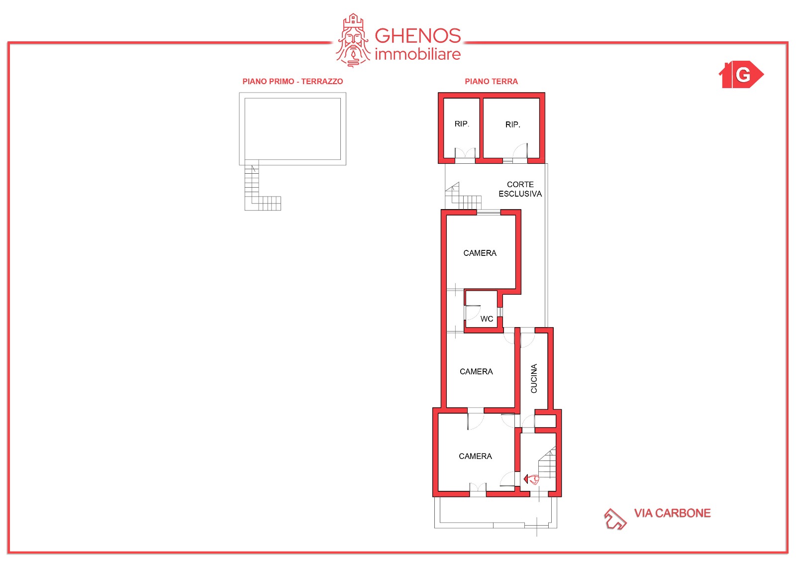 L’immobile dispone di due ingressi, uno dal portoncino condominiale e l’altro da un terrazzino. La proprietà è composta da quattro camere, un bagno e due cucine. Dalla corte interna si accede, per mezzo di una scala al primo piano, dove troviamo un terrazzo di 20 mq, ideale per vivere momenti di relax all’aperto.