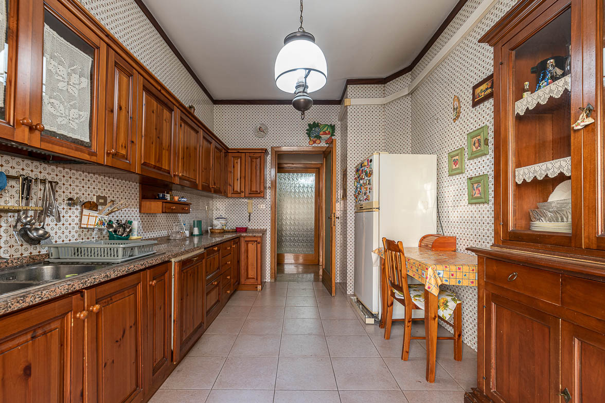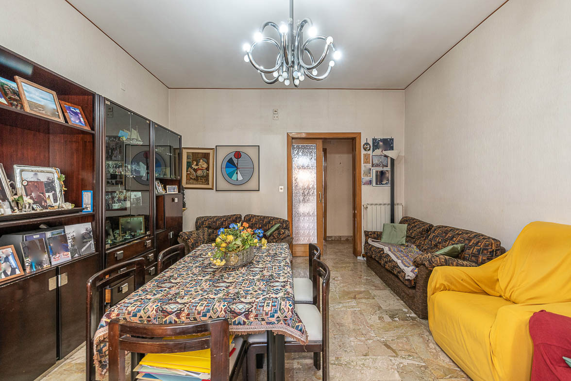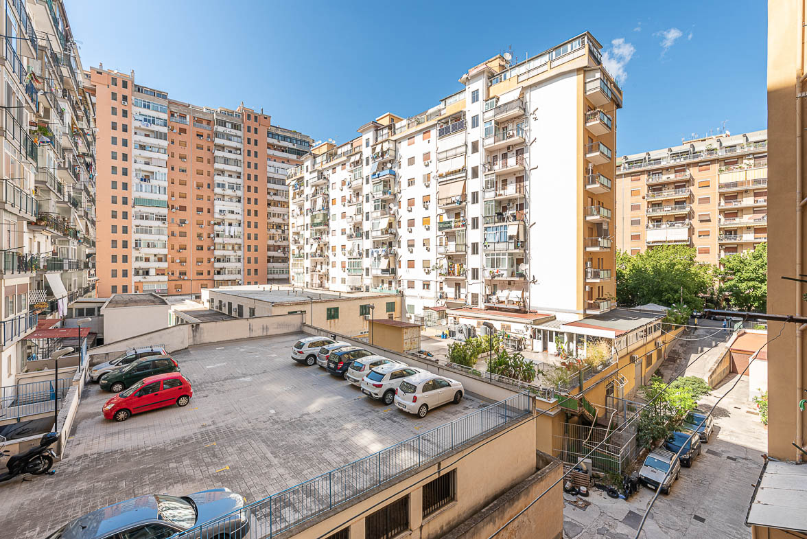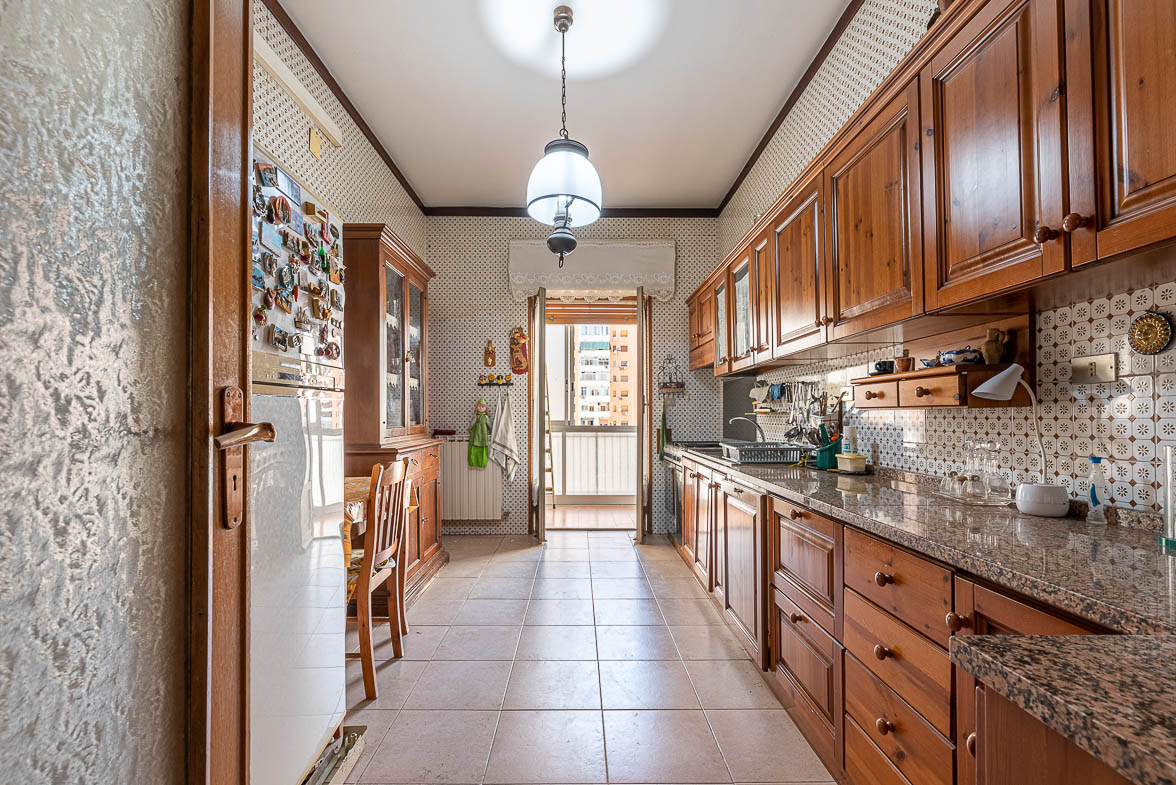 La cucina abitabile, vero cuore della casa, si apre su un balcone verandato collegato alla lavanderia, offrendo uno spazio pratico e funzionale per la gestione della quotidianità. Due bagni, ben distribuiti, completano la disposizione interna, insieme a due ulteriori balconi con affaccio su Via Val di Mazara, che donano respiro e luminosità agli ambienti principali.