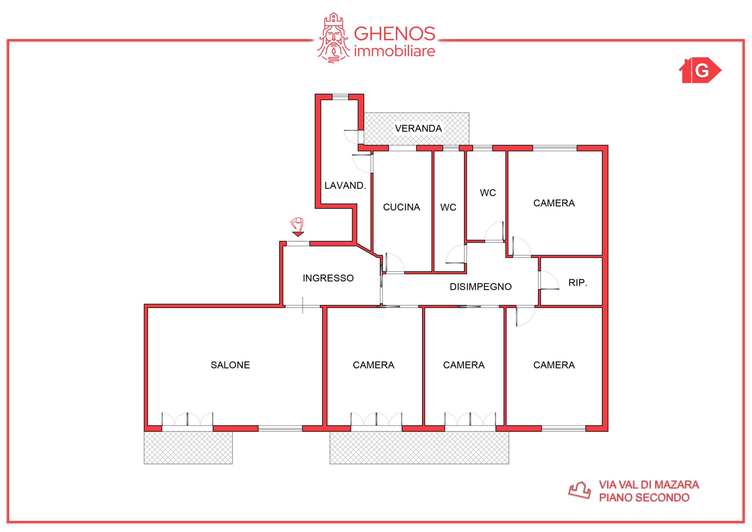 In Via Val di Mazara n°22, proponiamo in vendita un ampio appartamento di 6 vani, 208 mq, posto al secondo piano di un edificio signorile.
