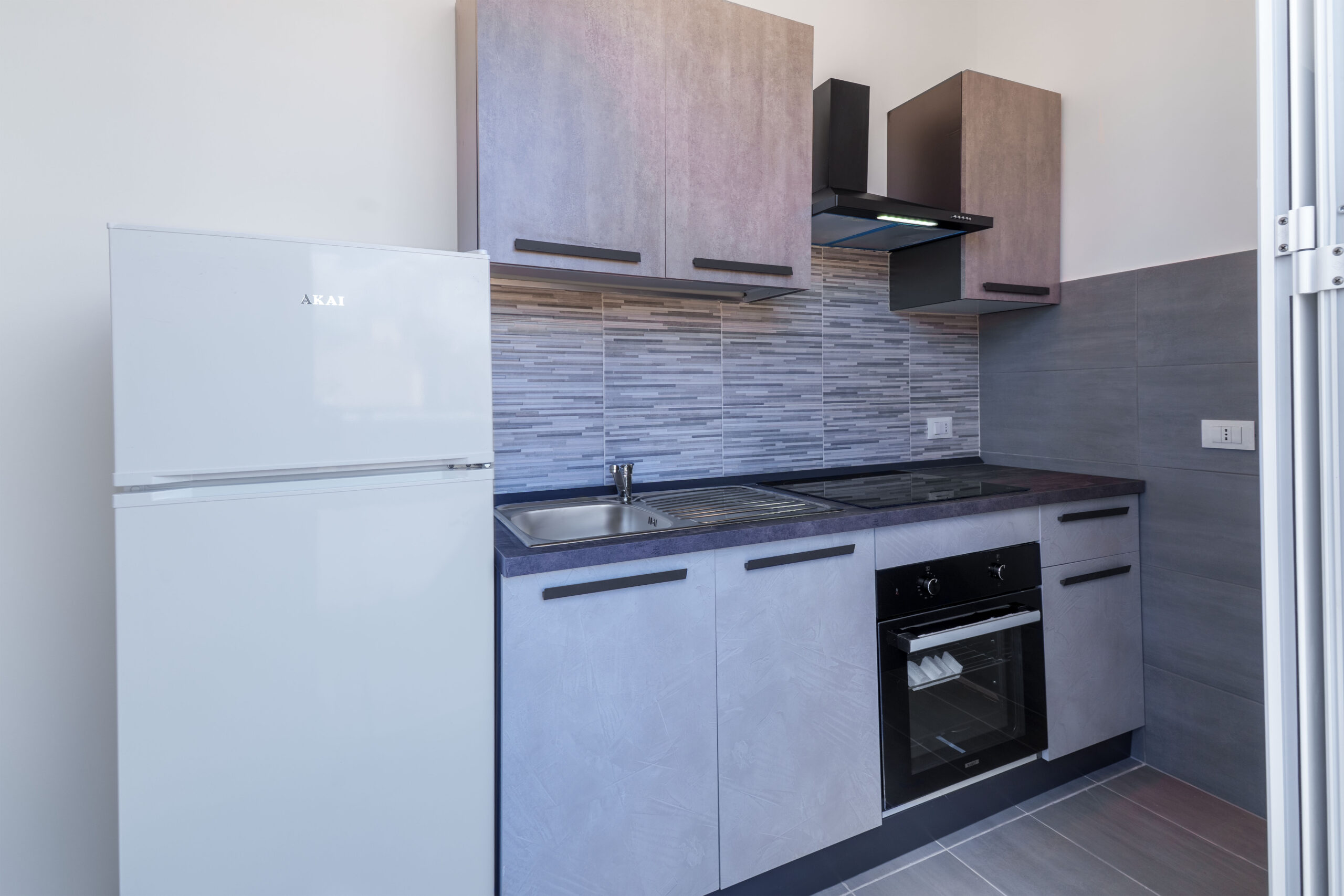 L’appartamento è completamente arredato e dotato di: porta blindata, infissi in alluminio con vetrocamera e persiane, riscaldamento autonomo con allaccio a bombole, condizionatore caldo/freddo nella camera matrimoniale, piano cottura a induzione, lavatrice, armadio, scarpiera e TV. Gli interni sono curati con pavimenti in grès grigio e porte in legno laccate bianche.