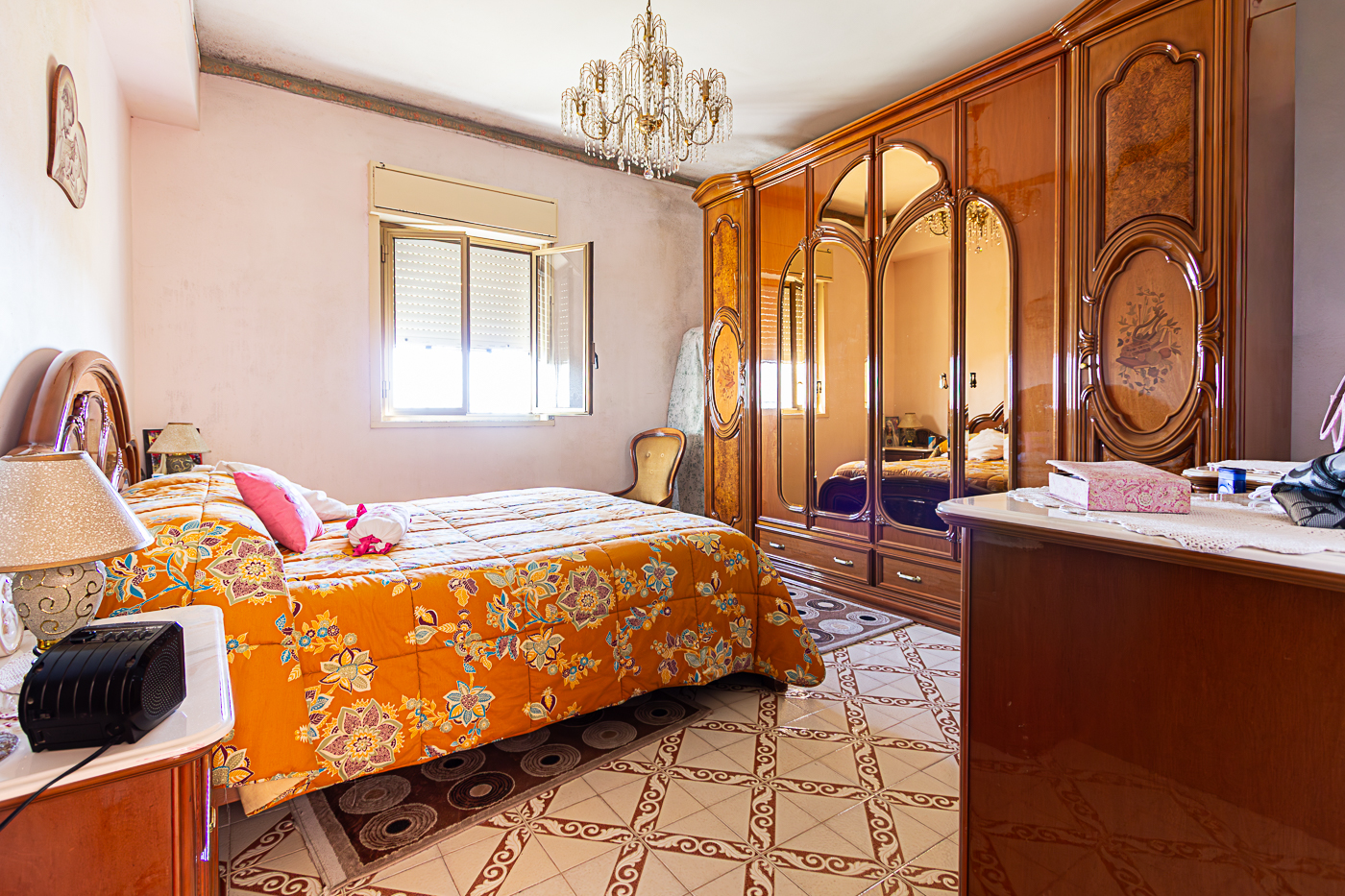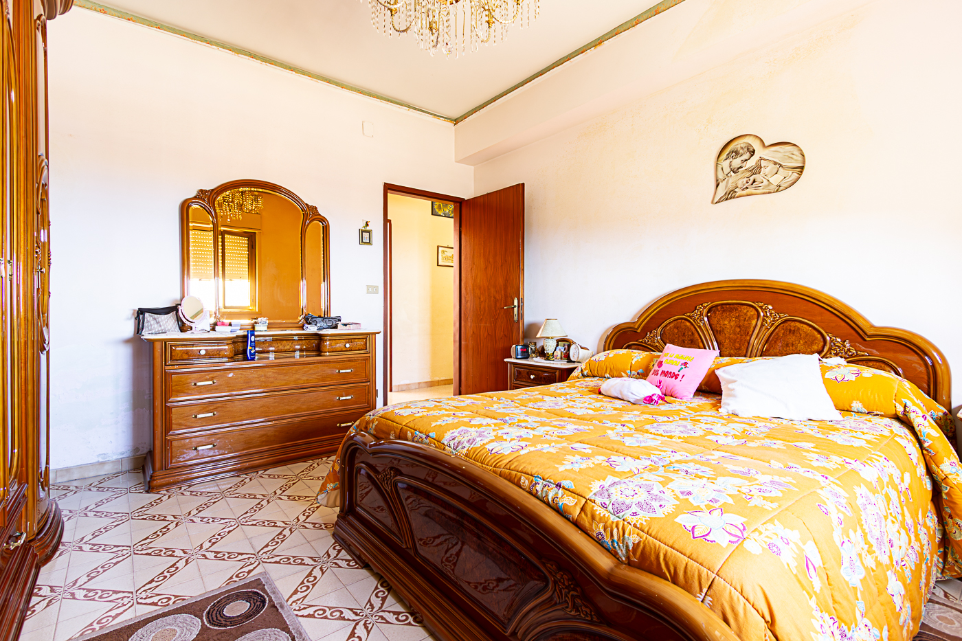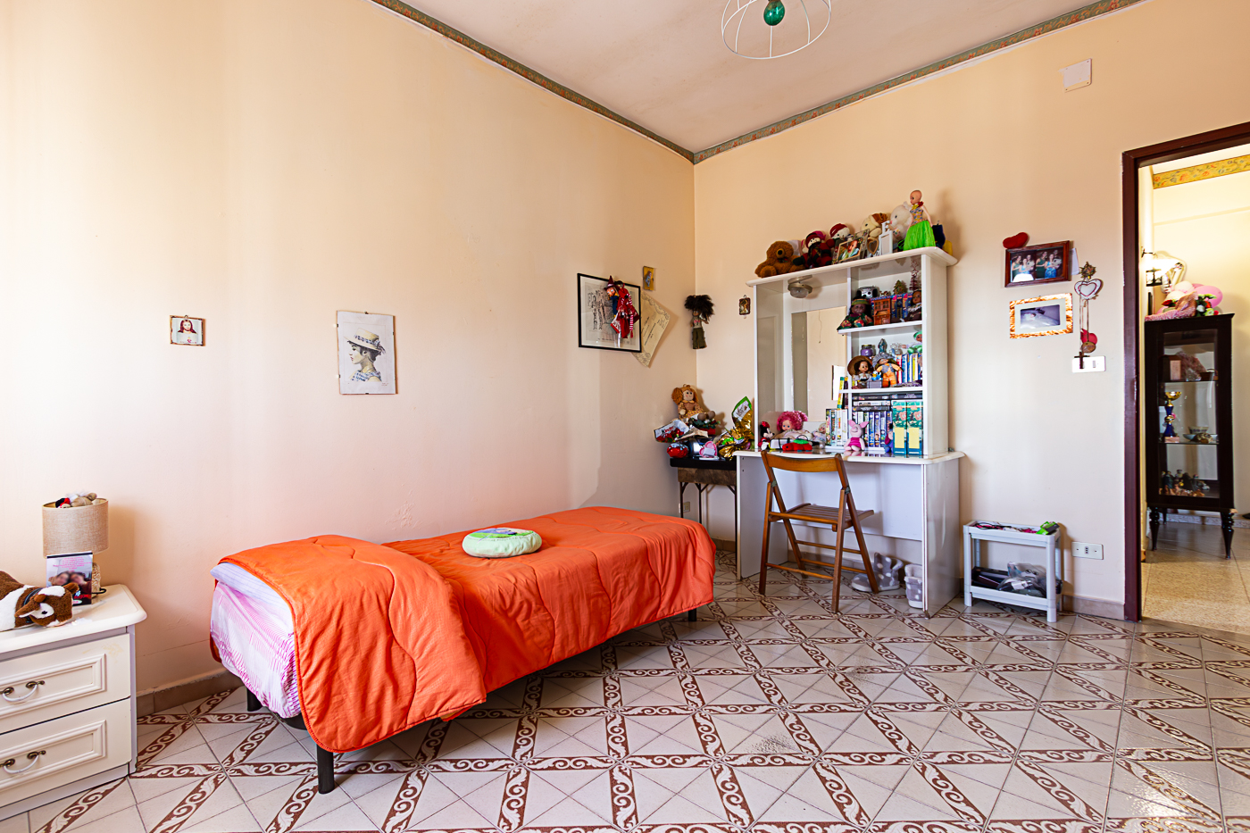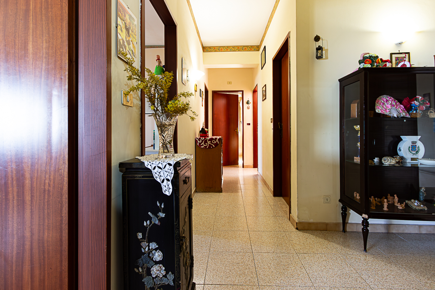 L’appartamento è composto da ingresso su disimpegno, cucina abitabile, quattro camere, un bagno e un comodo ripostiglio.