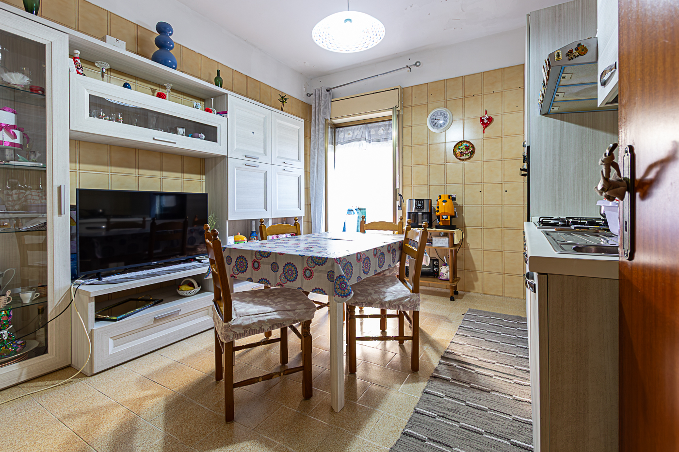 La presenza di tre balconi garantisce una doppia esposizione, rendendo gli ambienti luminosi e ben arieggiati.