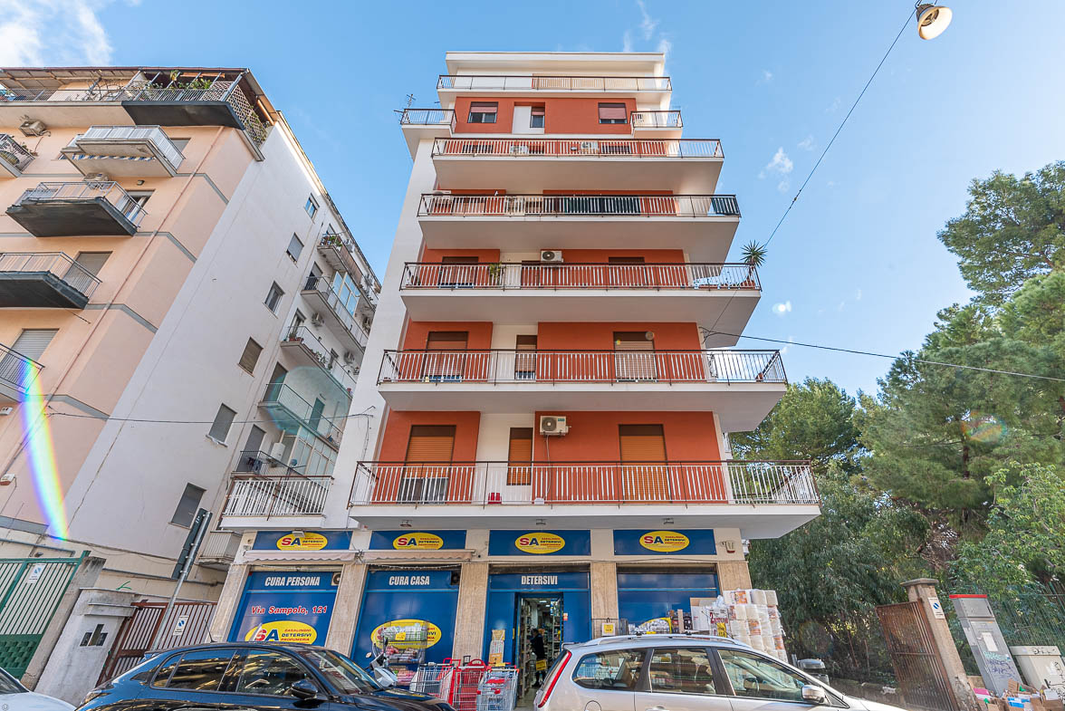 In Via Sampolo, 123, proponiamo in vendita un elegante appartamento di 143 mq, recentemente ristrutturato, situato al 6° piano di un edificio degli anni ’80 di 7 piani.