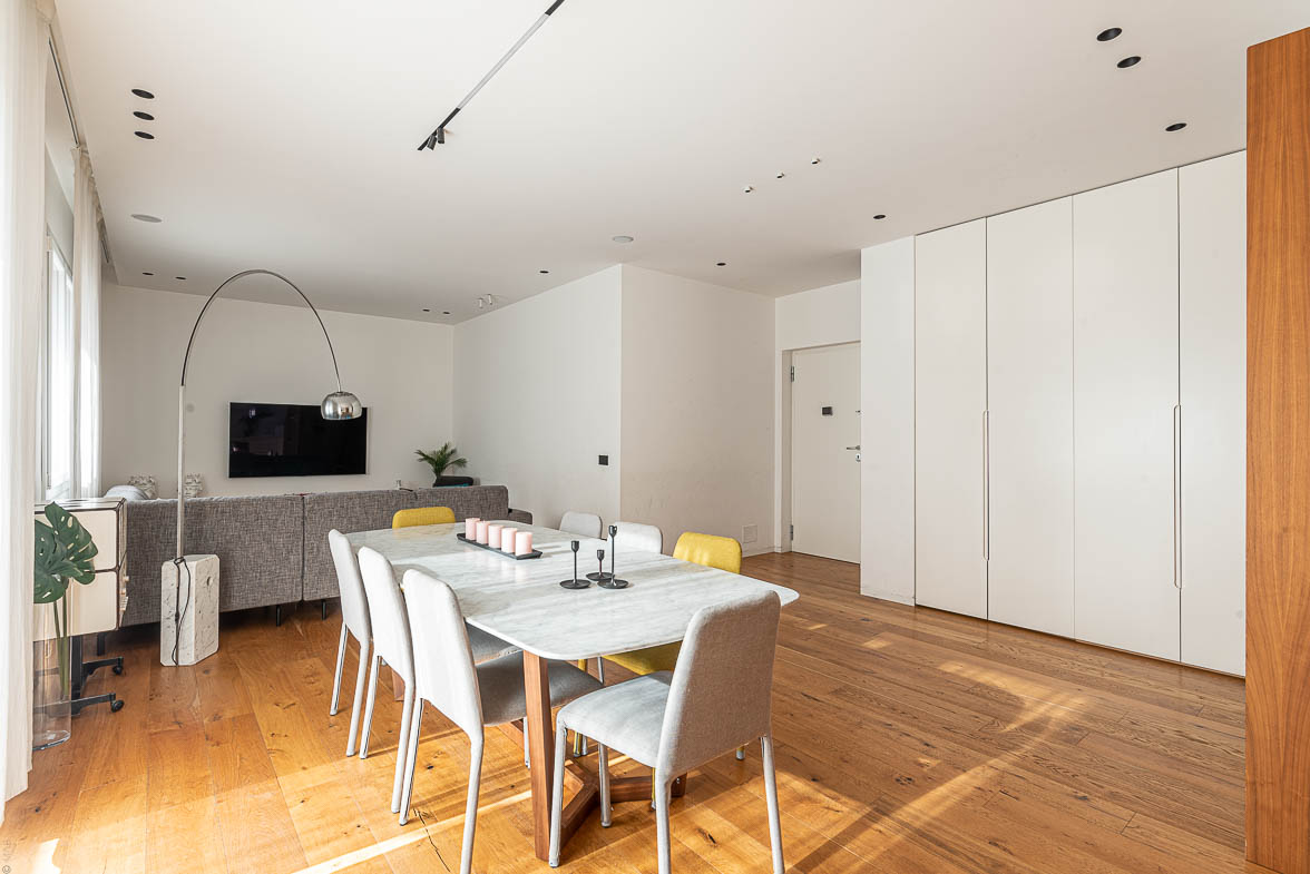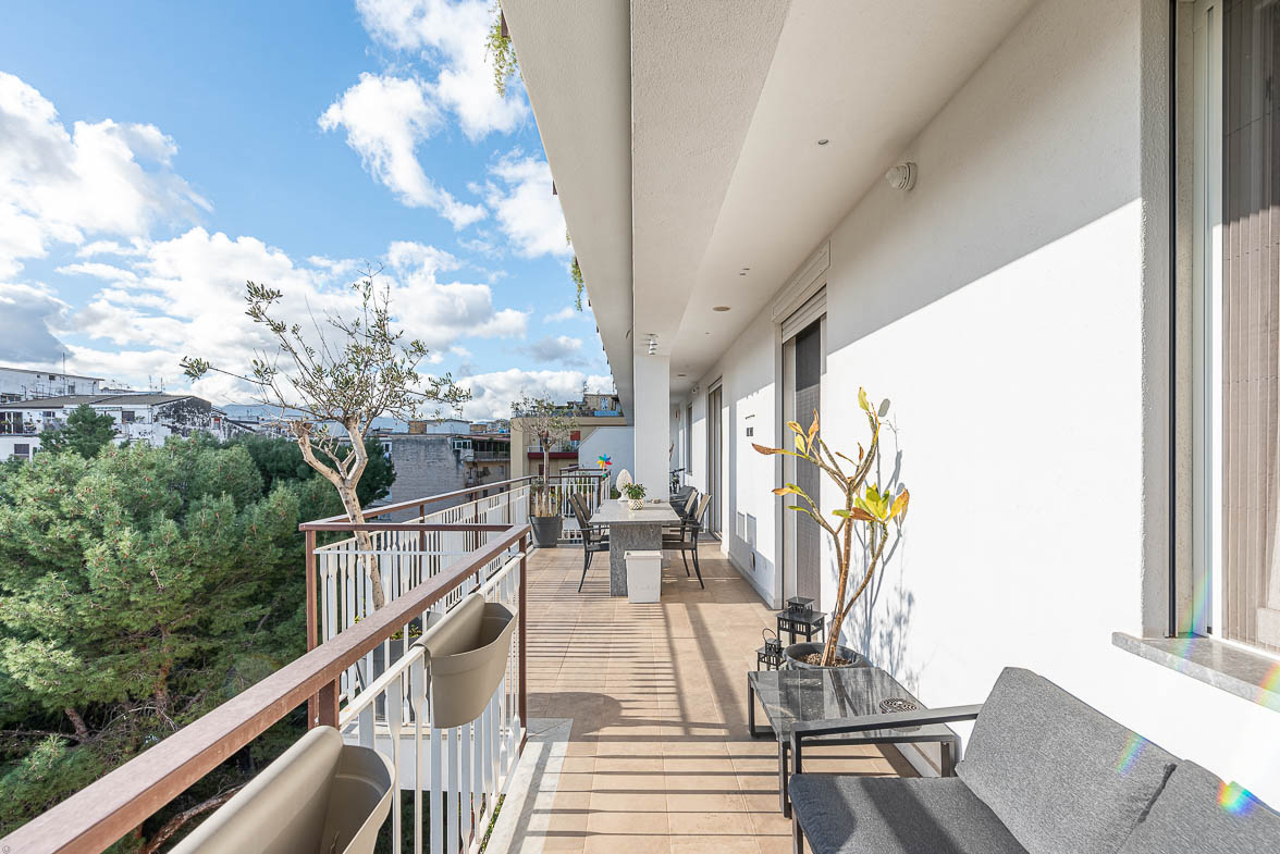 L’immobile, estremamente luminoso e rifinito con uno stile moderno e raffinato, si apre su un’ampia zona living di 53 mq con cucina open space, affacciata su un balcone terrazzato panoramico di circa 30 mq, elemento di grande pregio che dona luce naturale a tutti gli ambienti e offre ampie possibilità di personalizzazione, ideale per creare zone relax e aree pranzo all’aperto.