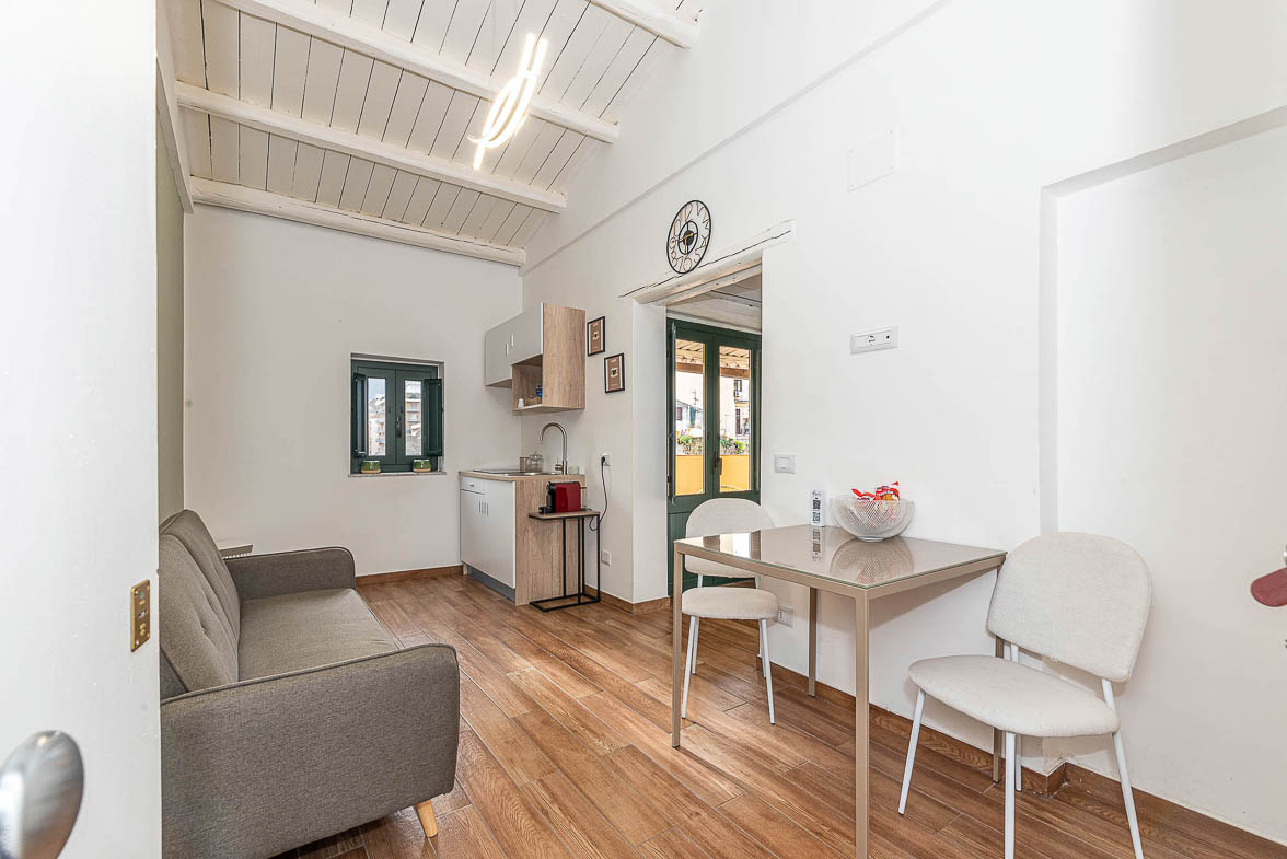 Proponiamo in affitto un elegante bivani di 60 mq, finemente ristrutturato, situato al terzo piano di una palazzina di tre piani, senza ascensore, a pochi passi da via Maqueda.