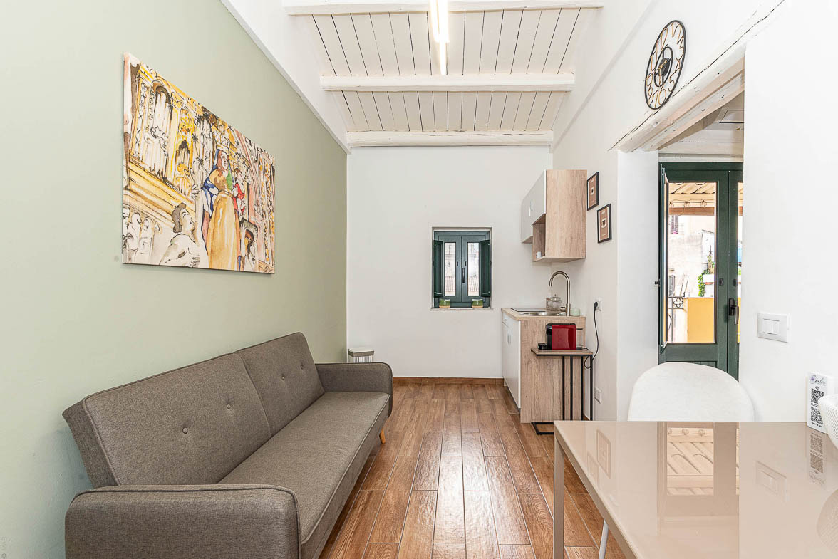 L’appartamento viene consegnato completamente arredato e corredato, dotato di: climatizzatore caldo/freddo, TV a schermo piatto, frigorifero, piano cottura a induzione e forno a microonde.