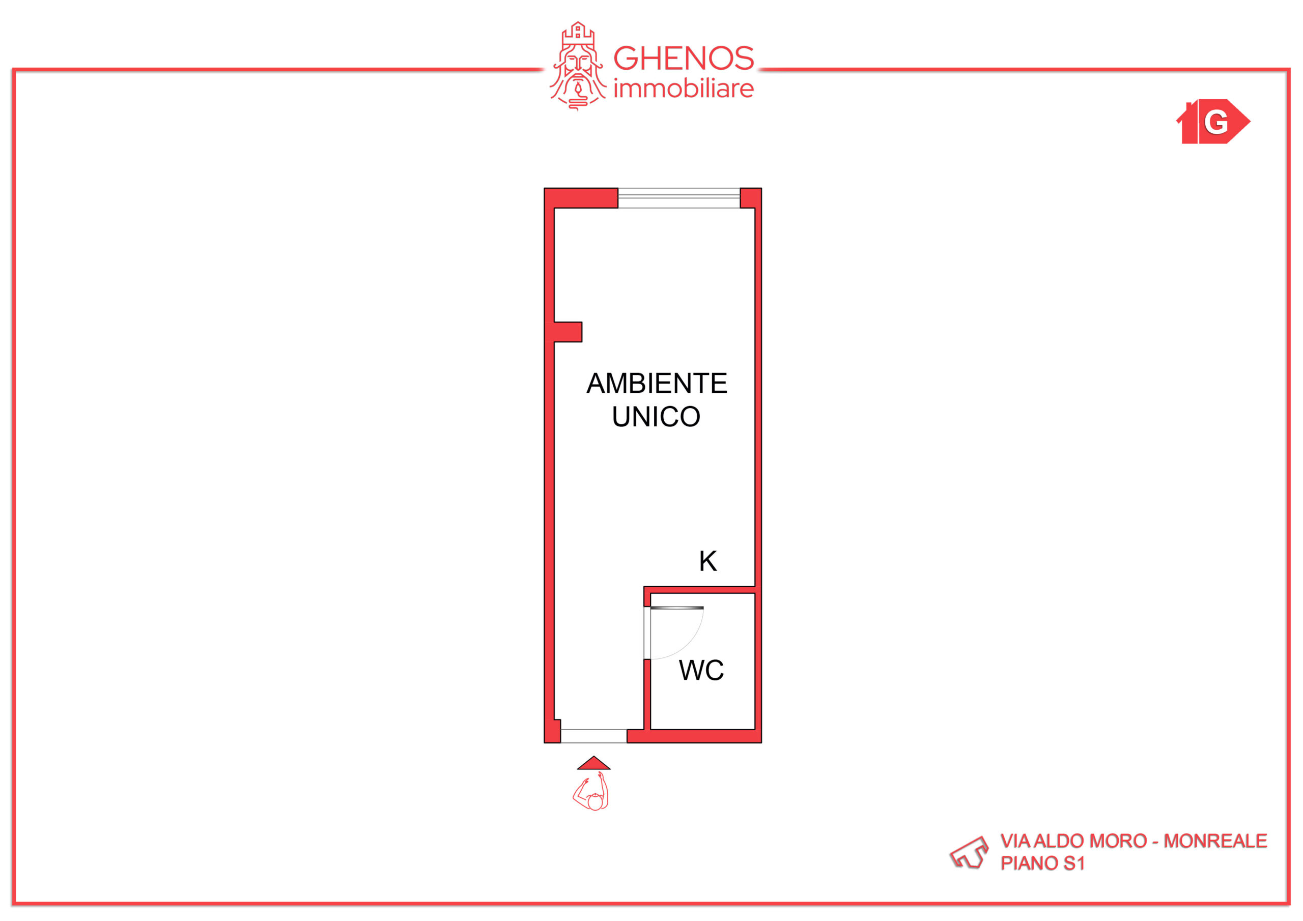 In contesto tranquillo e ben servito, nel comune di Monreale, proponiamo in vendita un monolocale di 28 mq, situato al piano seminterrato di un edificio in Via Aldo Moro n. 43.