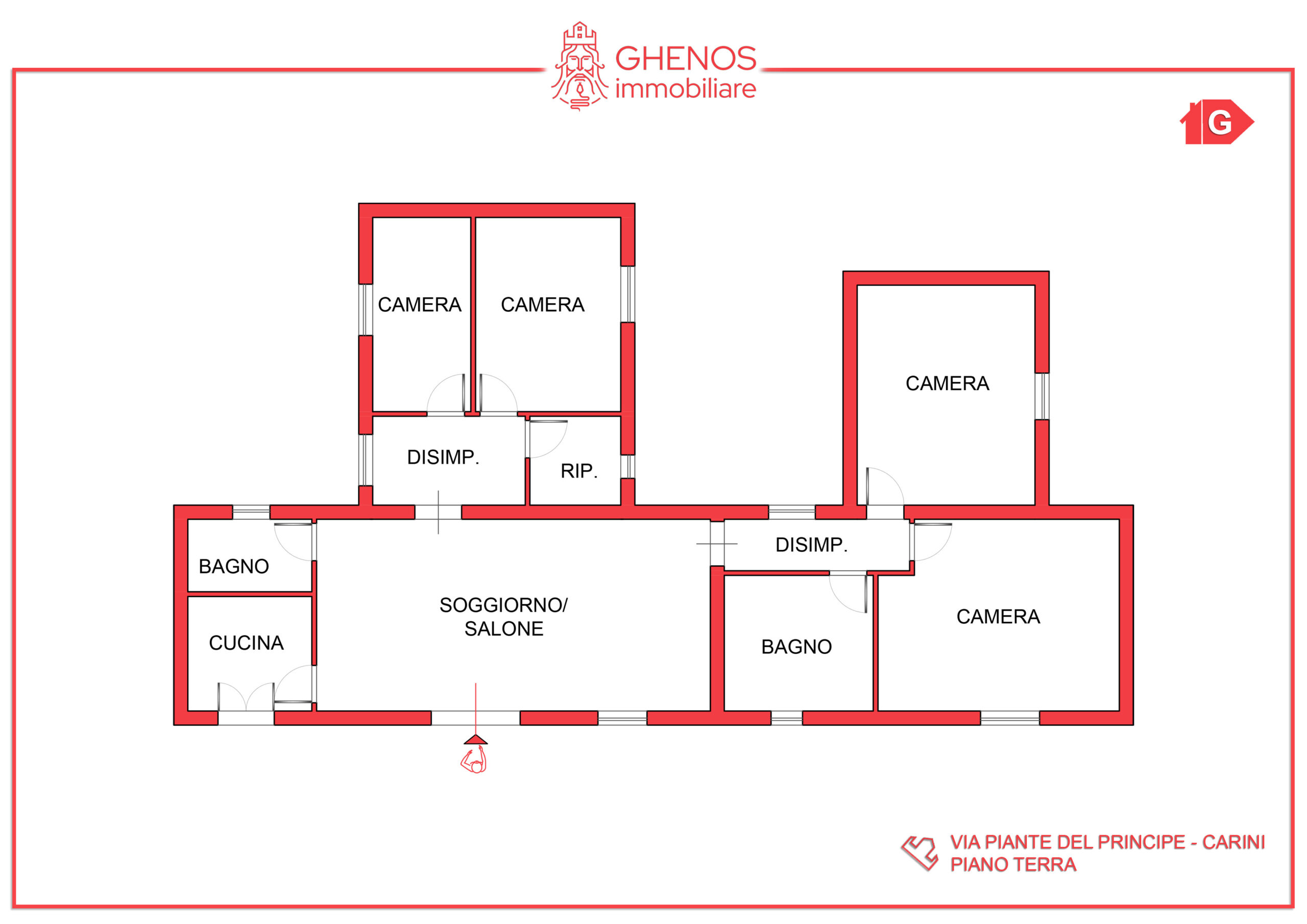L’immobile è composto da: ingresso su salone doppio, cucina, 3 camere da letto, cameretta, doppi servizi, ripostiglio, oltre a lastrico solare sovrastante.